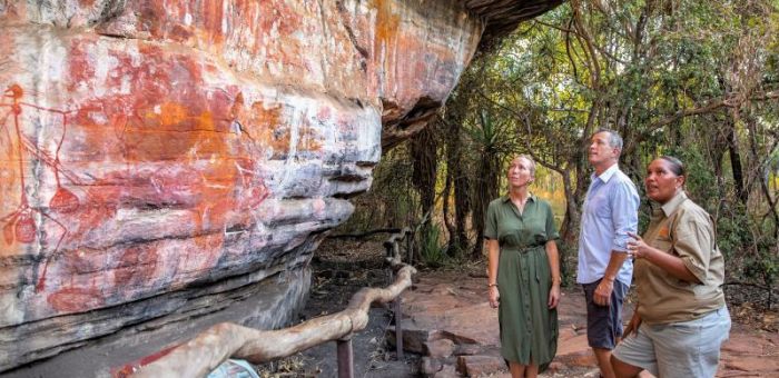 Join us on the adventure of a lifetime as we uncover the very best Kakadu has to offer. We leave tropical Darwin travelling through the rich floodplains towards Kakadu National Park, this 20,000 square kilometre area is teeming with wildlife, important Aboriginal rock art sites, and diverse landscapes. Our first stop on this 1 Day Kakadu Tour is an optional Jumping Croc Cruise on the Adelaide River or a visit to the Fogg Dam Conservation Reserve. The traditional lands of the Limilngan-Wulna people (who are active in the reserve’s management), one of the most spectacular places to explore the diverse wildlife of the Top End, home to numerous species of birds, turtles, water pythons and of course the iconic Saltwater Crocodile. We’ll stop in at the Corroboree Park Tavern where you are able to support locals and purchase your lunch and snacks for the day ahead, and continue on to Bowali Visitor Centre to learn more about the rich Aboriginal culture and history of this special place. We’ll visit the famous *Cahills Crossing in search of crocodiles at this eye-opening stretch of water, the only road access point between Arnhem Land and Kakadu National Park. Visit the home to some of the oldest and best-preserved rock art galleries in the world, Ubirr Rock, and marvel and the amazing rock formations of the East Alligator region of Kakadu as it meets the West Arnhem plateau. Depending on seasonality and accessibility to Ubirr, we may instead visit Kakadu’s other main rock art attraction at Nourlangie Rock, traditionally also known as Burrungkuy, where we can marvel at the art along the shaded rock shelters, appreciate the colourful birdlife and hope to catch a glimpse of a number of species found no-where else on the planet.*Cahills Crossing is subject to seasonality and weather conditions permitting access. Meals: n/a. Driving distance: 620 km. Walking distance: 2km.