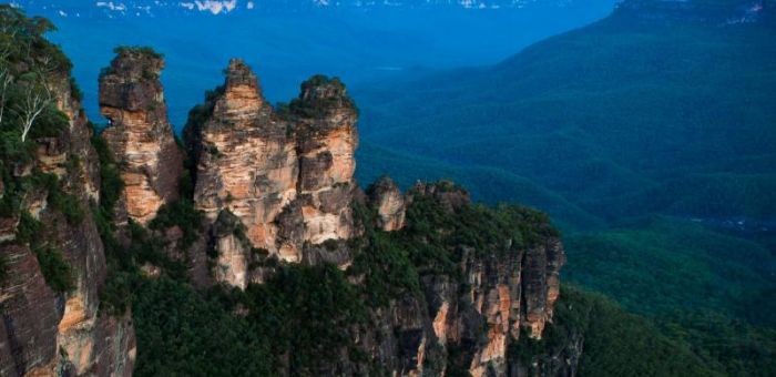 • At Echo Point enjoy splendid views of the Three Sisters.