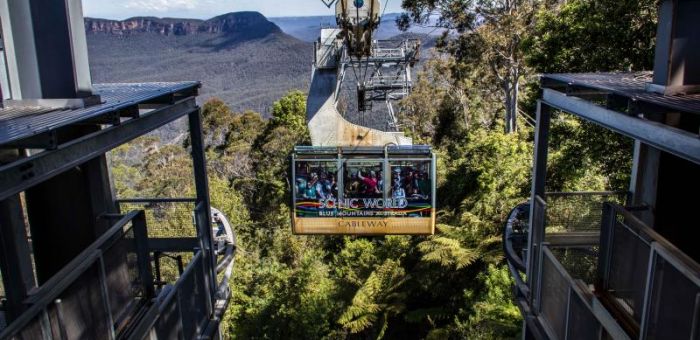 • Glide between cliff tops above Jamison Valley in the Skyway.