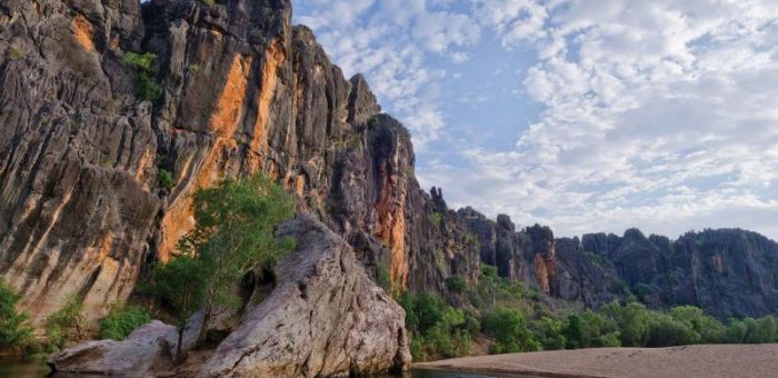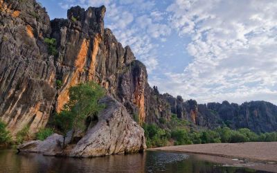 Today we head to Windjana Gorge, once an underwater reef just 350 million years ago. During the wet season a river flows all the way through it, but during the dry it’s really more a series of ponds and billabongs. Set out on a bit of an explore, hopefully spotting a freshwater crocodile or two. The Western Kimberley region is full of endless stunning gorges that have to be explored and this afternoon is no exception. Bell Gorge (if open) is home to a stunning cascade of water flowing from the previous wet season rains that fall in the King Leopold Ranges. We enjoy an afternoon swim in the large plunge pool before making our way to camp along the Gibb River Road..