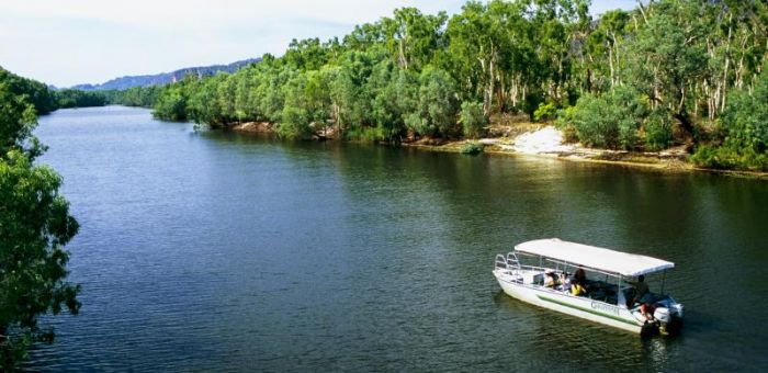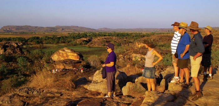Welcome to Darwin, the Northern Territory’s tropical capital. There’s no time to waste, so get cracking at 6.30 am and hit the road to Wulna Country, where your Limilngan-Wulna hosts – the land’s Traditional Owners – will greet you with a Cul Cul or ‘Welcome to Country’. Learn about their culture during bush tucker talks, didgeridoo and basket weaving demonstrations. We continue travelling East along the Arnhem Highway to the Corroboree Billabong on the Mary River, for a cruise to learn about the Top End’s wetlands, and a very good chance of sighting a variety of birdlife and the saltwater crocodiles. After lunch we continue to the border of Kakadu and Arnhem Land, Cahill’s Crossing, where the 4WD is utilised to traverse the croc-infested East Alligator River. Welcome to Arnhem Land. Learn about the cultural importance of the West Arnhem Land region as your Bininj guide takes you to restricted areas that First Nation ancestors have been visiting for thousands of years. Spend the afternoon learning about the region and its people’s history from your guide, before heading back to Kakadu for an overnight stay.