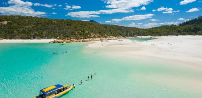 The Northern Exposure is a favourite amongst avid snorkellers, including two different snorkel destinations. Not only that, but it includes a visit to the stunning beach at Hill Inlet, north end of Whitehaven Beach, and a guided National Park walk to the lookout above the silica sand of Whitehaven. Guests explore the restricted area of beautiful Hill Inlet at Whitehaven Beach.